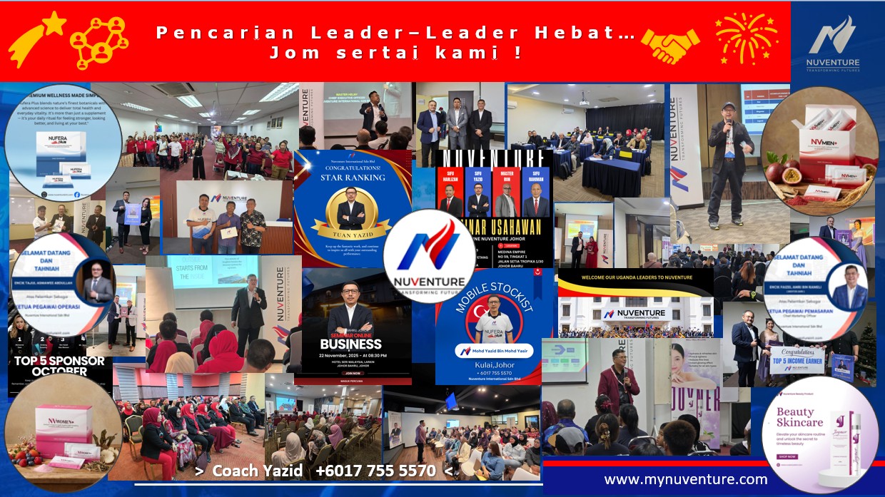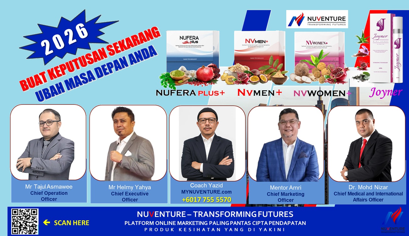 MY NUVENTURE INTERNATIONAL adalah Usahawan Rasmi di bawah Syarikat NUVENTURE INTERNATIONAL SDN BHD. Kami adalah Pengedar serta Stokis Rasmi syarikat.